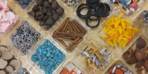 - L’éducation sensorielle: les loose parts nourrissent les jeux sensoriels, toutes les expériences sensorielles sont permises (le bruit de l’eau qui coule, le bruit d’une pierre qui tombe sur différents matériaux, les différentes odeurs, les différentes textures…)